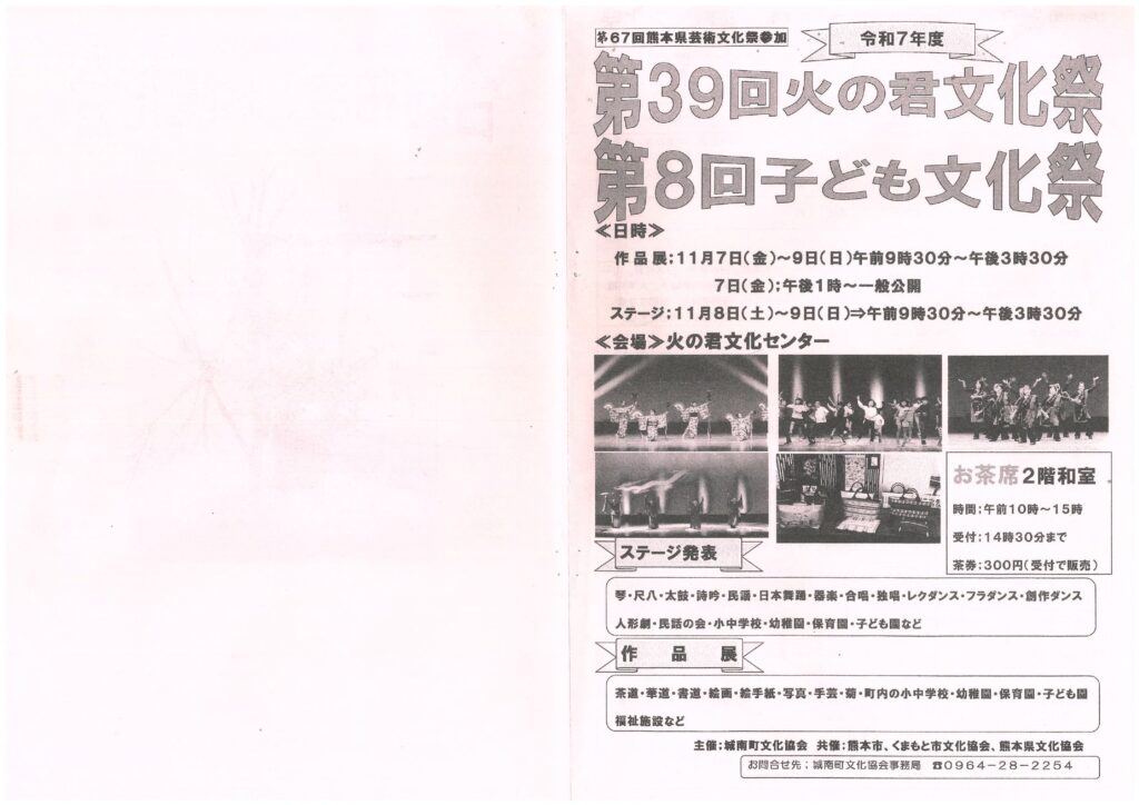 2025年11月7日(金)~9日(日)までの3日間、火の君文化センターにて、第39回火の君文化祭・第8回子ども文化祭が開催されました。