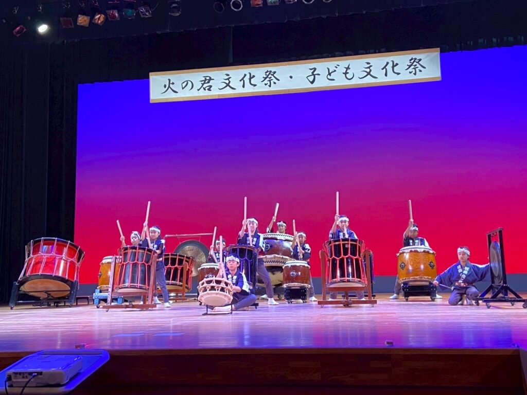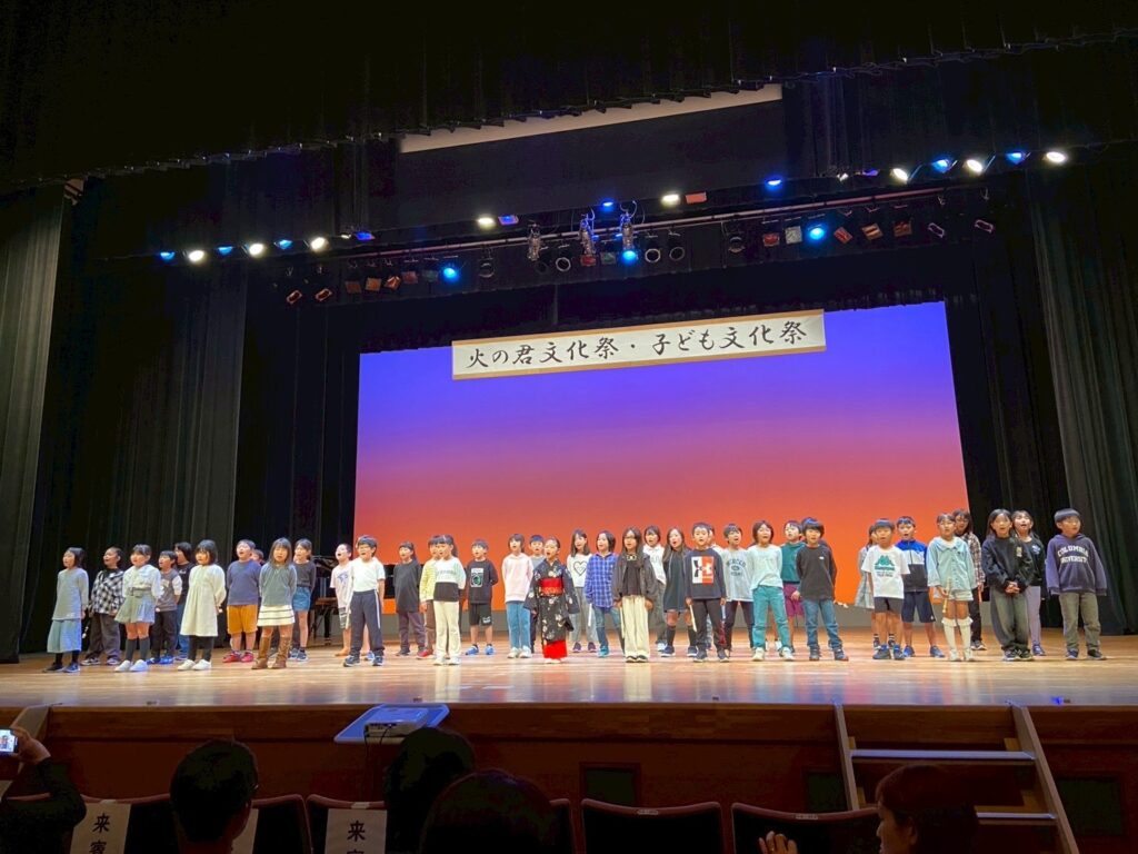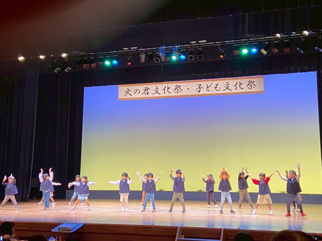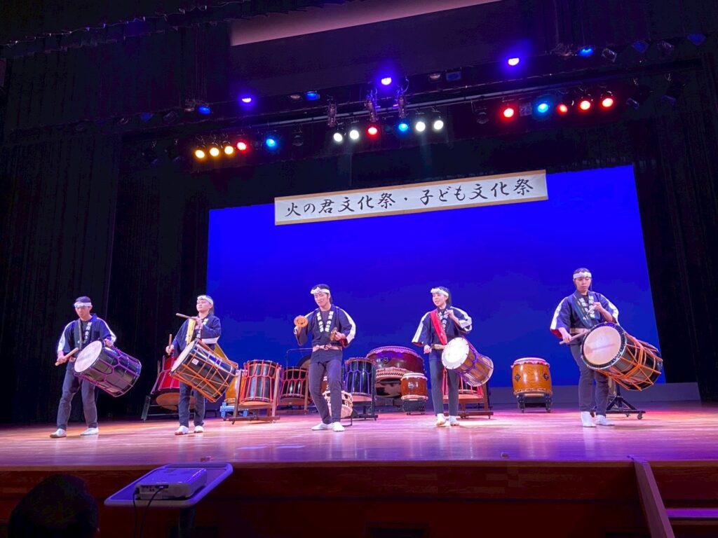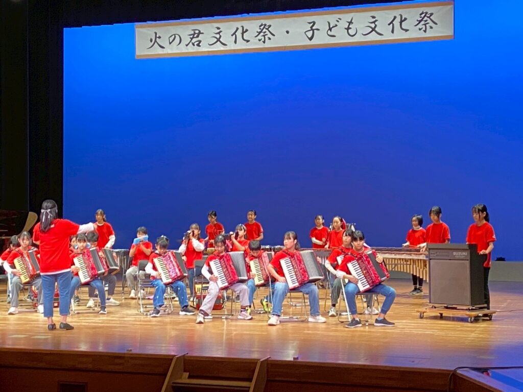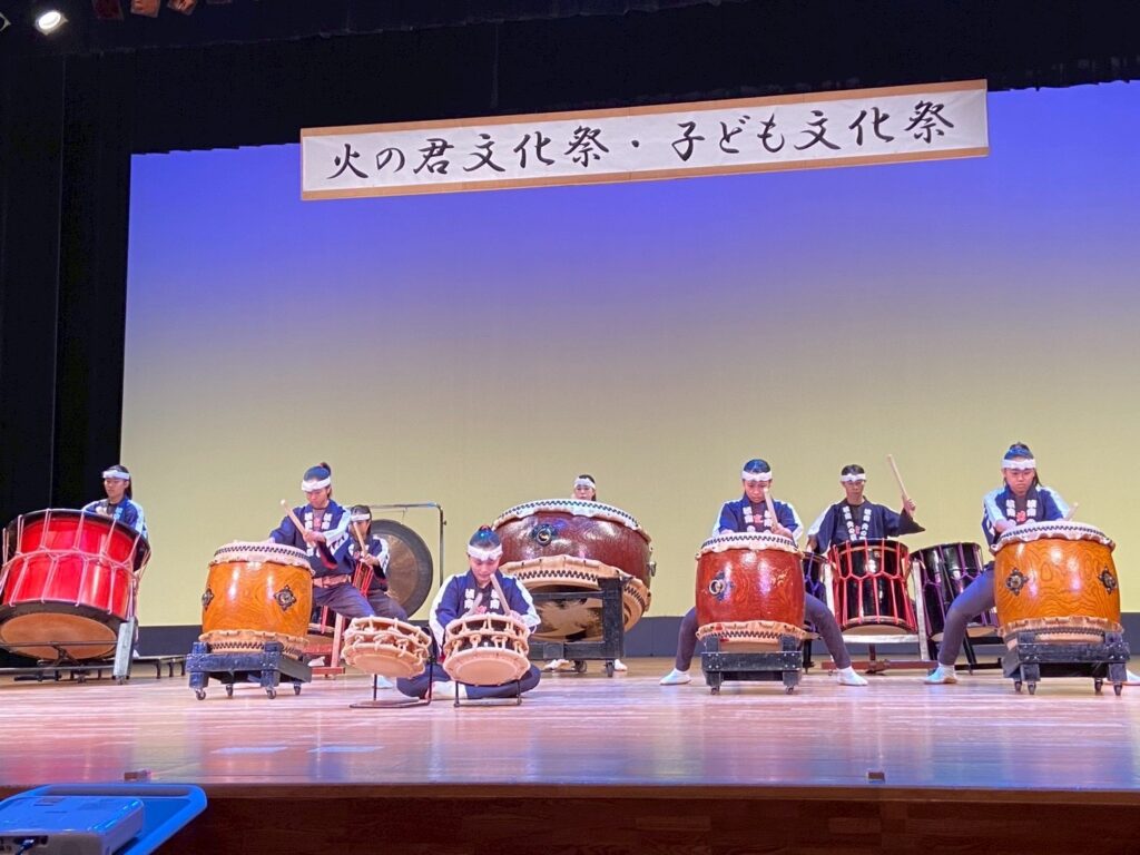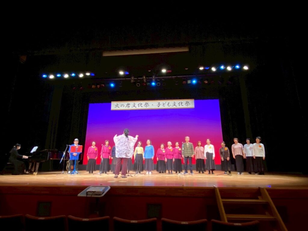 ステージ発表では、子ども文化祭として、保育園、こども園、幼稚園、小学校の園児・児童による合唱・器楽演奏・日舞・ダンスなど、火の君文化祭として、フラダンス・合唱・ギター・ウクレレ・フルート・ハーモニカ・大正琴・レクダンス・民謡・日舞・尺八・オカリナ・民話・創作ダンス・吟詠・サックスなど合計48組のパフォーマンスがありました。