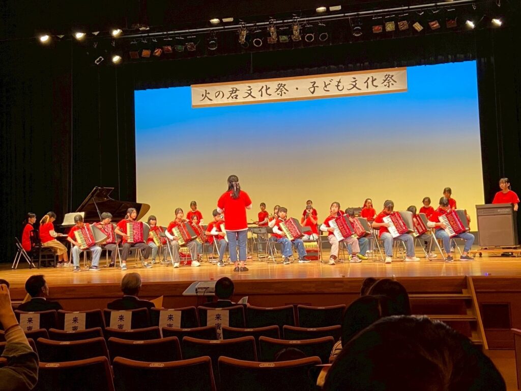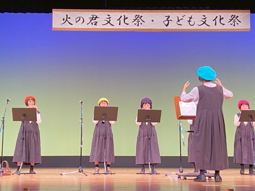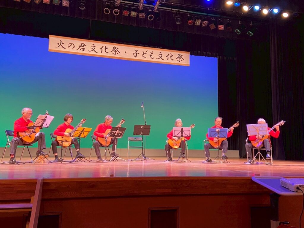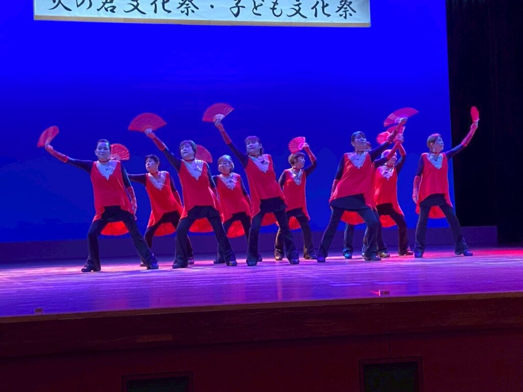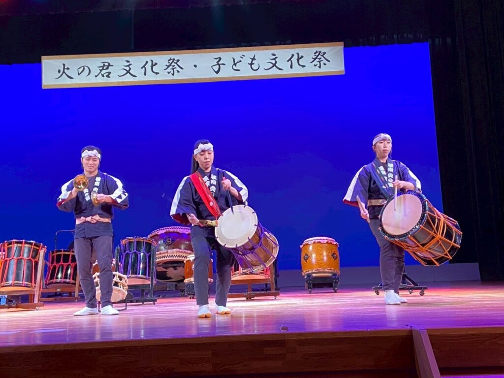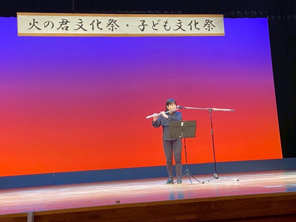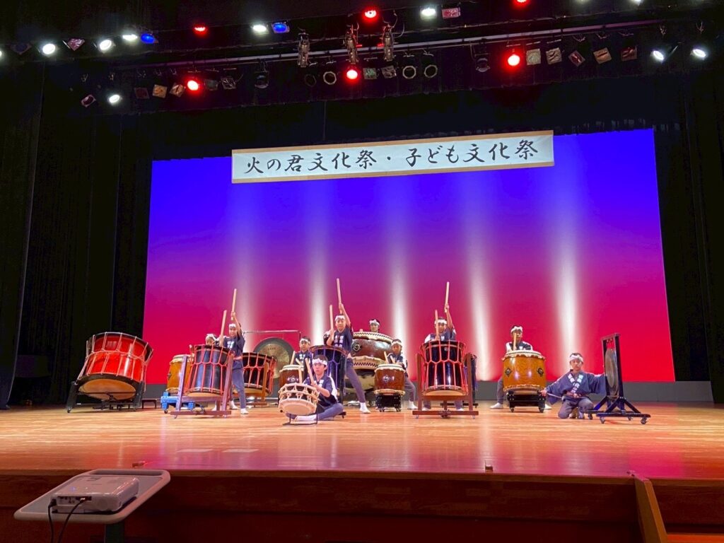 ステージ発表では、子ども文化祭として、保育園、こども園、幼稚園、小学校の園児・児童による合唱・器楽演奏・日舞・ダンスなど、火の君文化祭として、フラダンス・合唱・ギター・ウクレレ・フルート・ハーモニカ・大正琴・レクダンス・民謡・日舞・尺八・オカリナ・民話・創作ダンス・吟詠・サックスなど合計48組のパフォーマンスがありました。