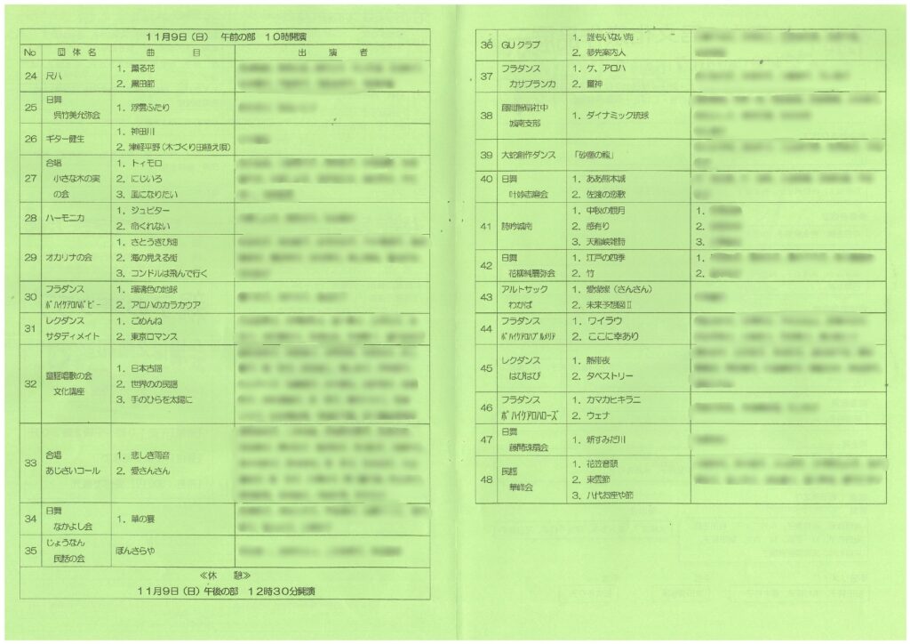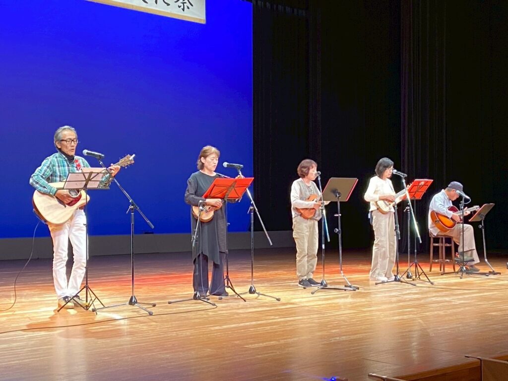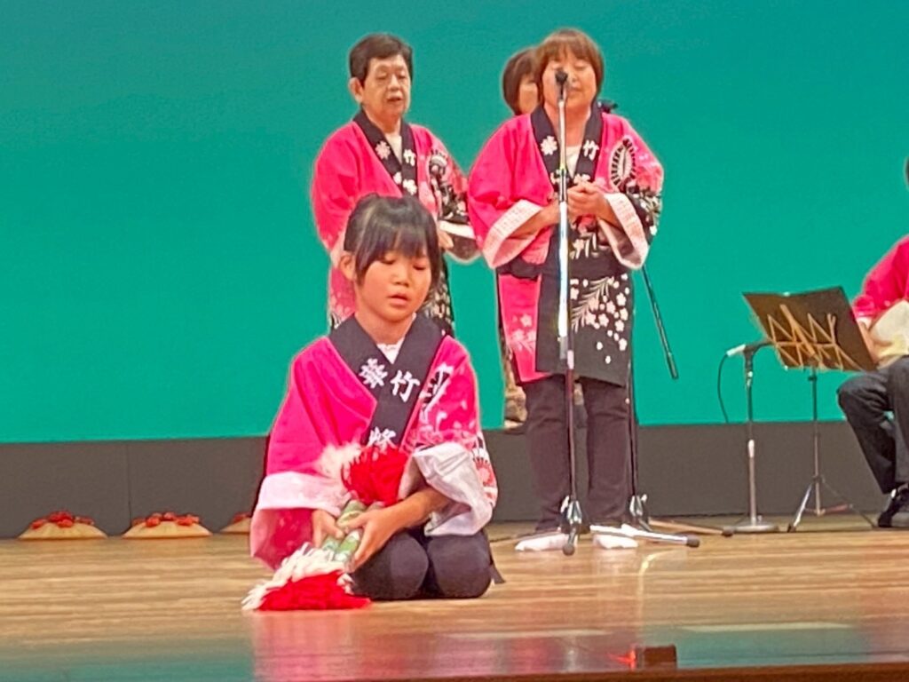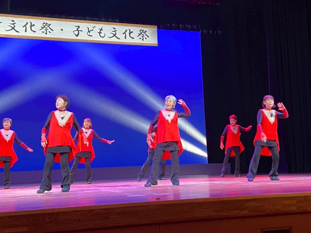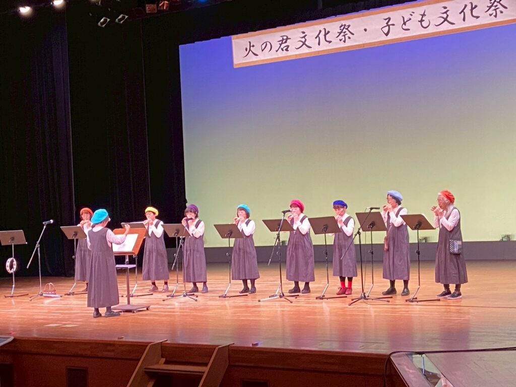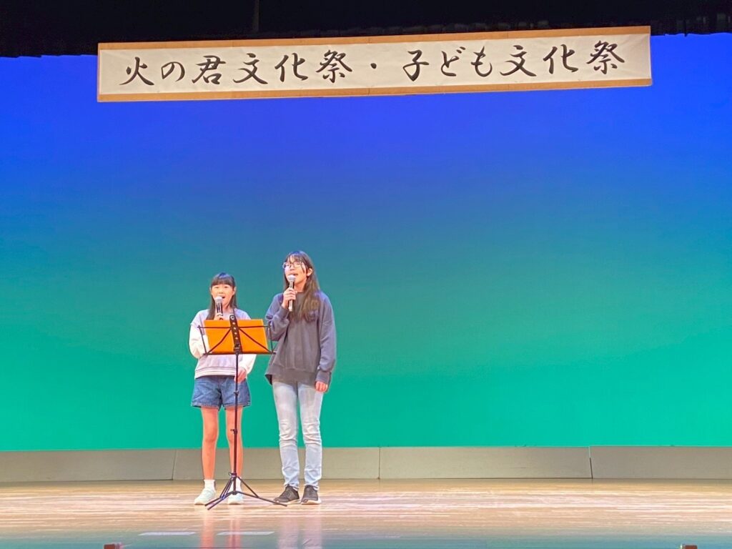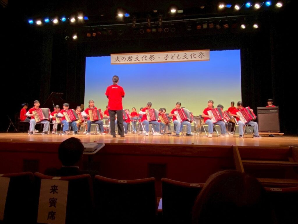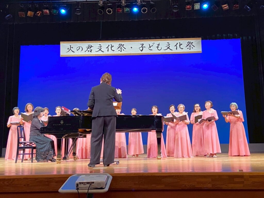 ステージ発表では、子ども文化祭として、保育園、こども園、幼稚園、小学校の園児・児童による合唱・器楽演奏・日舞・ダンスなど、火の君文化祭として、フラダンス・合唱・ギター・ウクレレ・フルート・ハーモニカ・大正琴・レクダンス・民謡・日舞・尺八・オカリナ・民話・創作ダンス・吟詠・サックスなど合計48組のパフォーマンスがありました。