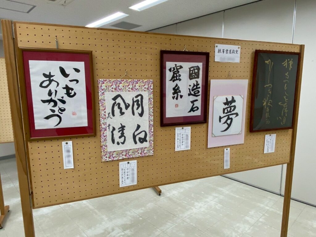 作品展示では、7日(金)午後から3日間、茶道・写真・華道・書道・絵画・絵手紙・手芸リメイク・手芸クラフトなどたくさんの作品が並びました。