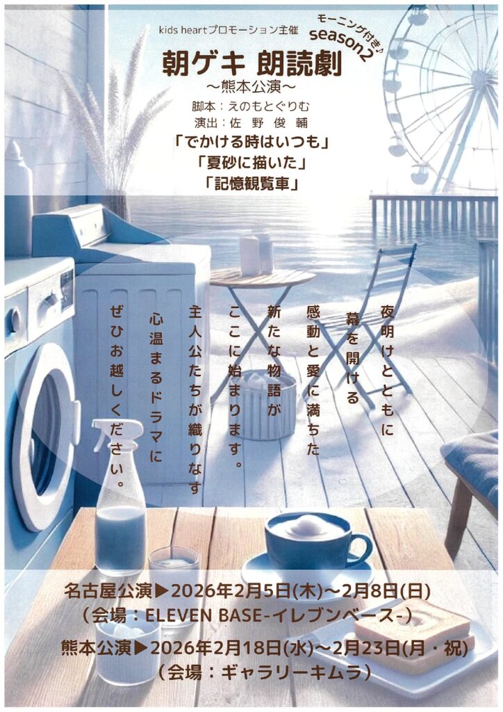 今回、初めて熊本で公演を開催します。熊本在住、熊本出身の出演者・スタッフを地域とともに舞台を創り上げる取り組みです。朝という特別な時間に、心が穏やかになるひとときをお届けします。